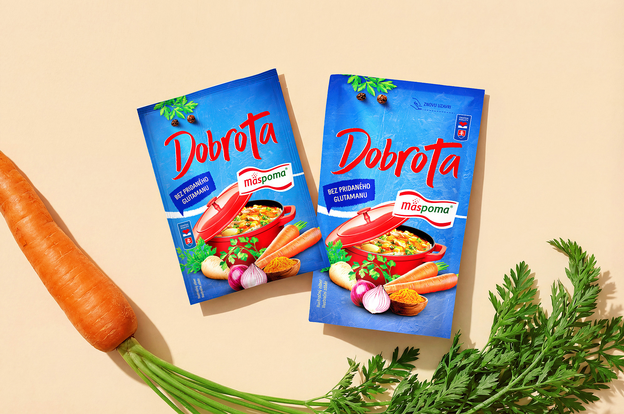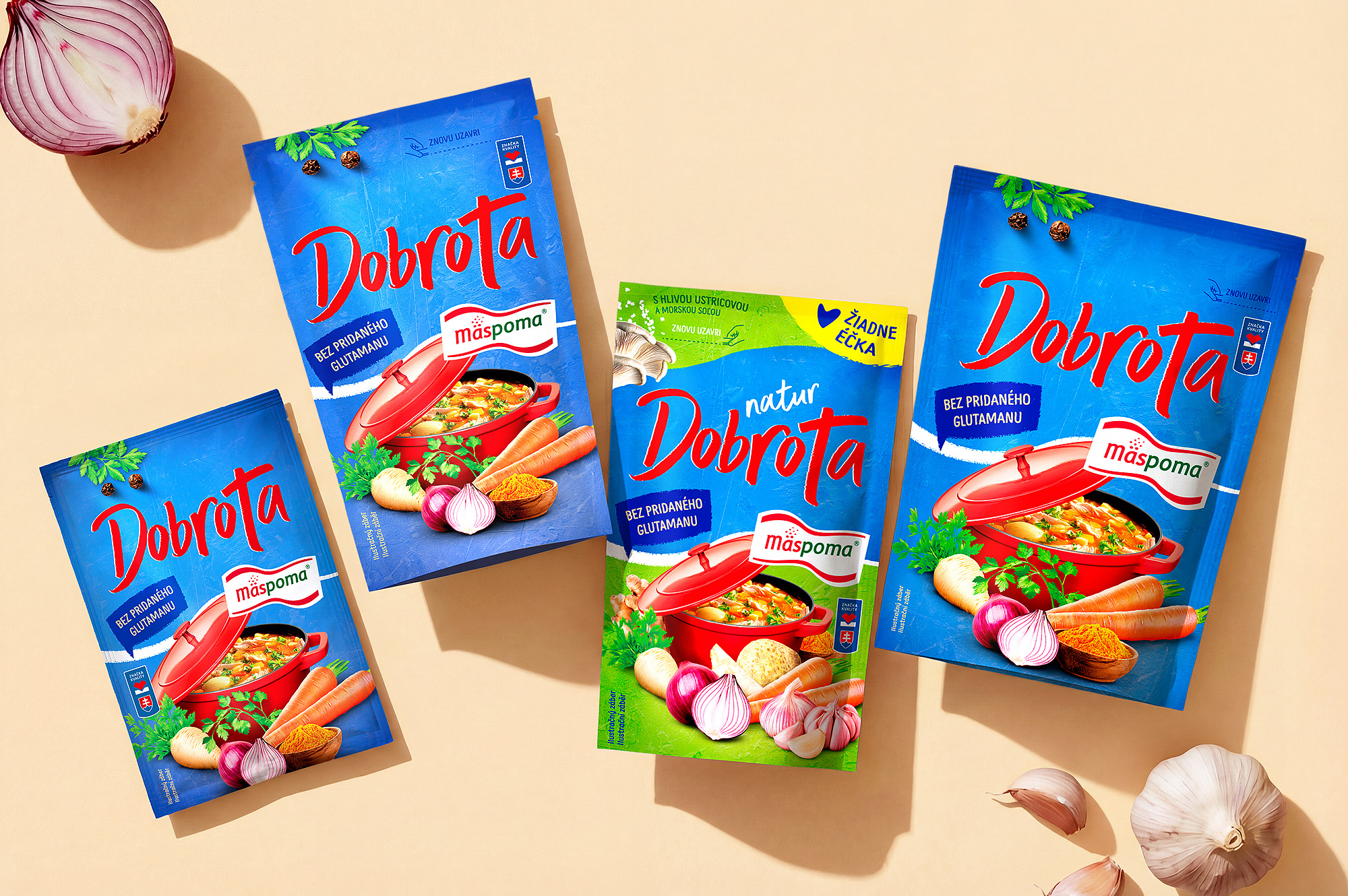Zum Projekt gehörte auch die vollständige Produktion der visuellen Inhalte. Alle Zutaten sowie das finale Food-Styling wurden inhouse fotografiert und anschließend präzise retuschiert, damit die Verpackung authentisch und zugleich attraktiv wirkt. Um die Marke Mäspoma kümmern wir uns bereits seit mehr als 10 Jahren, und dieses Dobroty-Redesign ist ein weiterer erfolgreicher Schritt in einer langfristigen Strategie zum Aufbau eines starken und konsistenten Verpackungsdesigns in der Praxis.