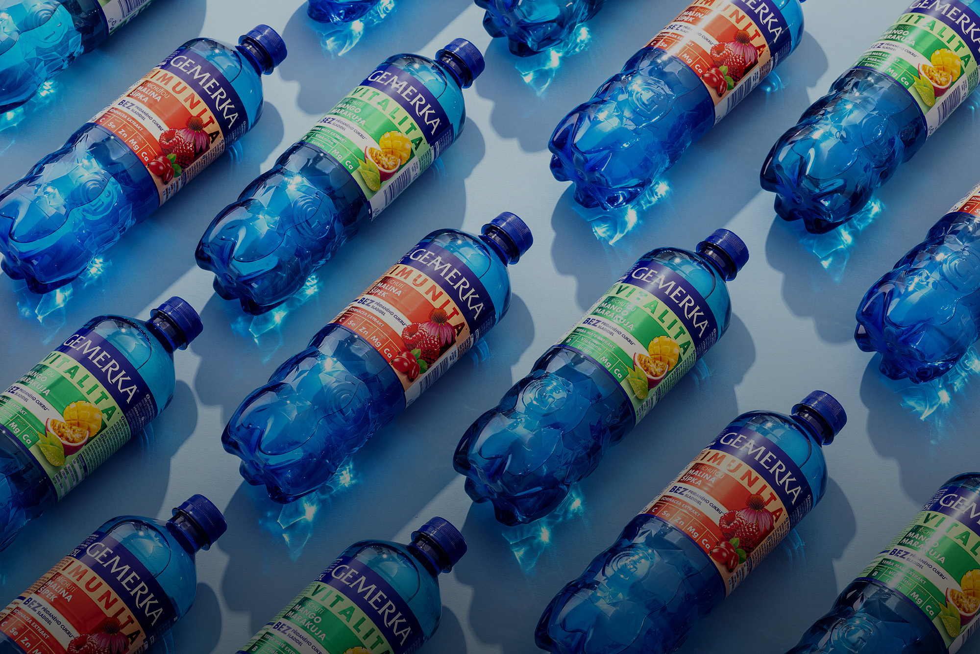 The Gemerka brand has expanded its portfolio with the functional drinks Immunity and Vitality. Our team handled the complete packaging – from designing the PET bottle shape, through label design, to producing realistic mockups prepared for marketing use.